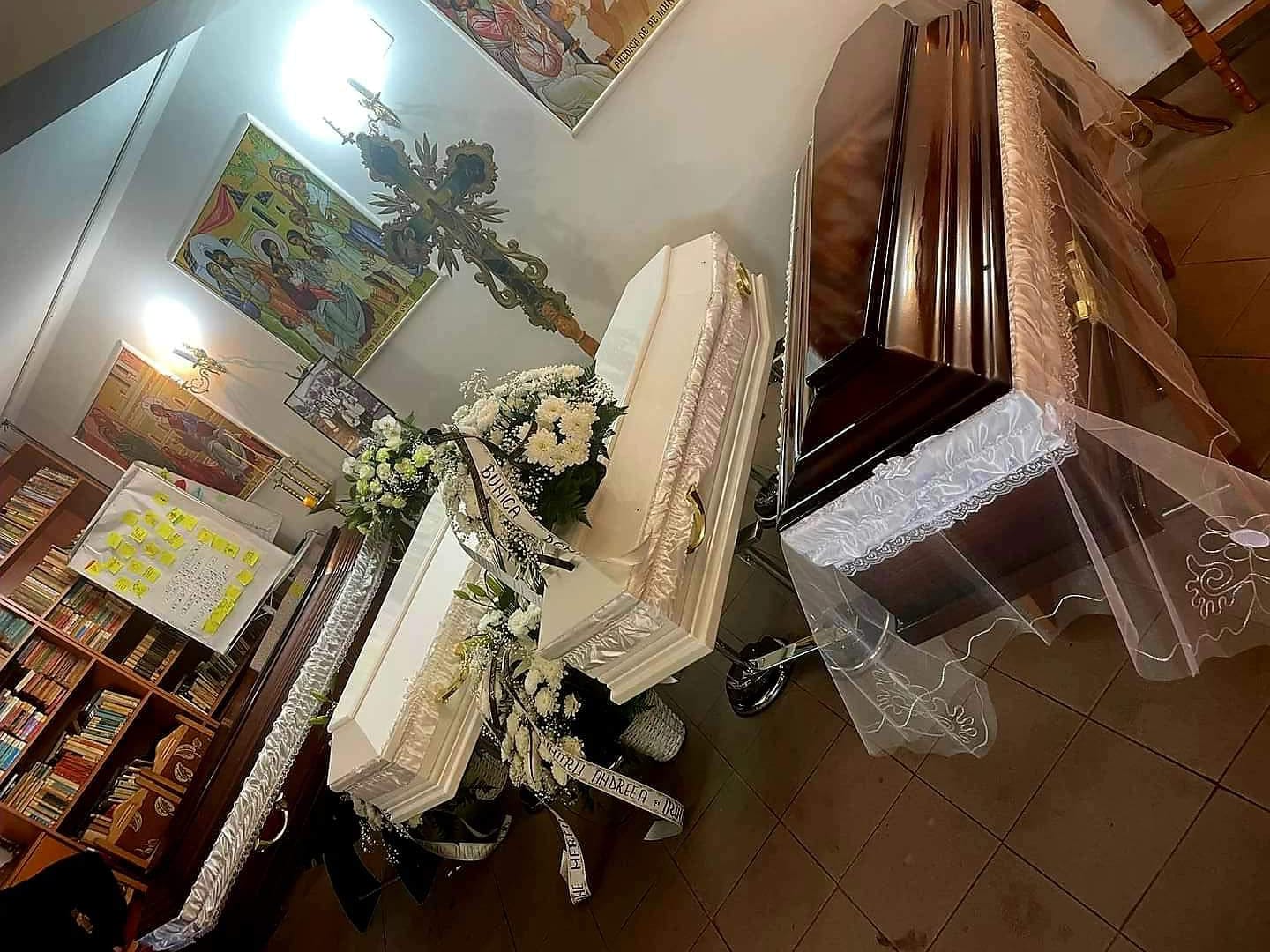 Trupurile neînsuflețite ale membrilor familiei L., victimele accidentului de la Cumpărătura au fost așezate în sicri, într-o casă mortuară din localitatea lor natală. Imaginile sunt sfâșietoare, indiferent cât de puternici suntem: 2 sicrie mici, albe, în care se află trupurile neînsuflețite ale celor doi copii de 8, respectiv zece ani, încadrate de cele două sicrie ale părinților. Flori albe au fost asezate in jurul lor.