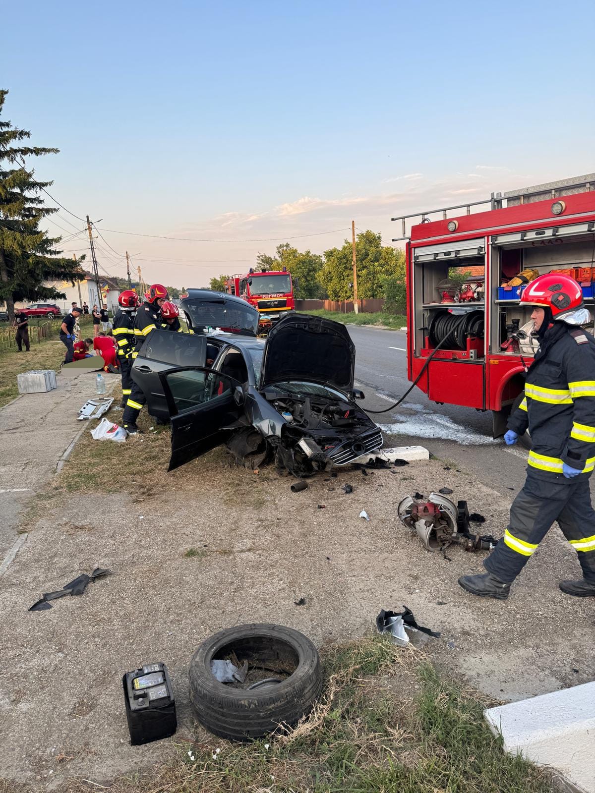 La sosirea echipajelor de intervenție, trei dintre cele patru persoane implicate fuseseră deja evacuate din autoturism, fie autoevacuate, fie cu ajutorul martorilor. Cea de-a patra victimă, o femeie în vârstă de 56 de ani, a fost extrasă din autoturism de echipajul de pompieri, fiind găsită în stop cardiorespirator. Au fost începute imediat manevrele de resuscitare, însă, din nefericire, acestea nu au avut rezultat, victima fiind declarată decedată.