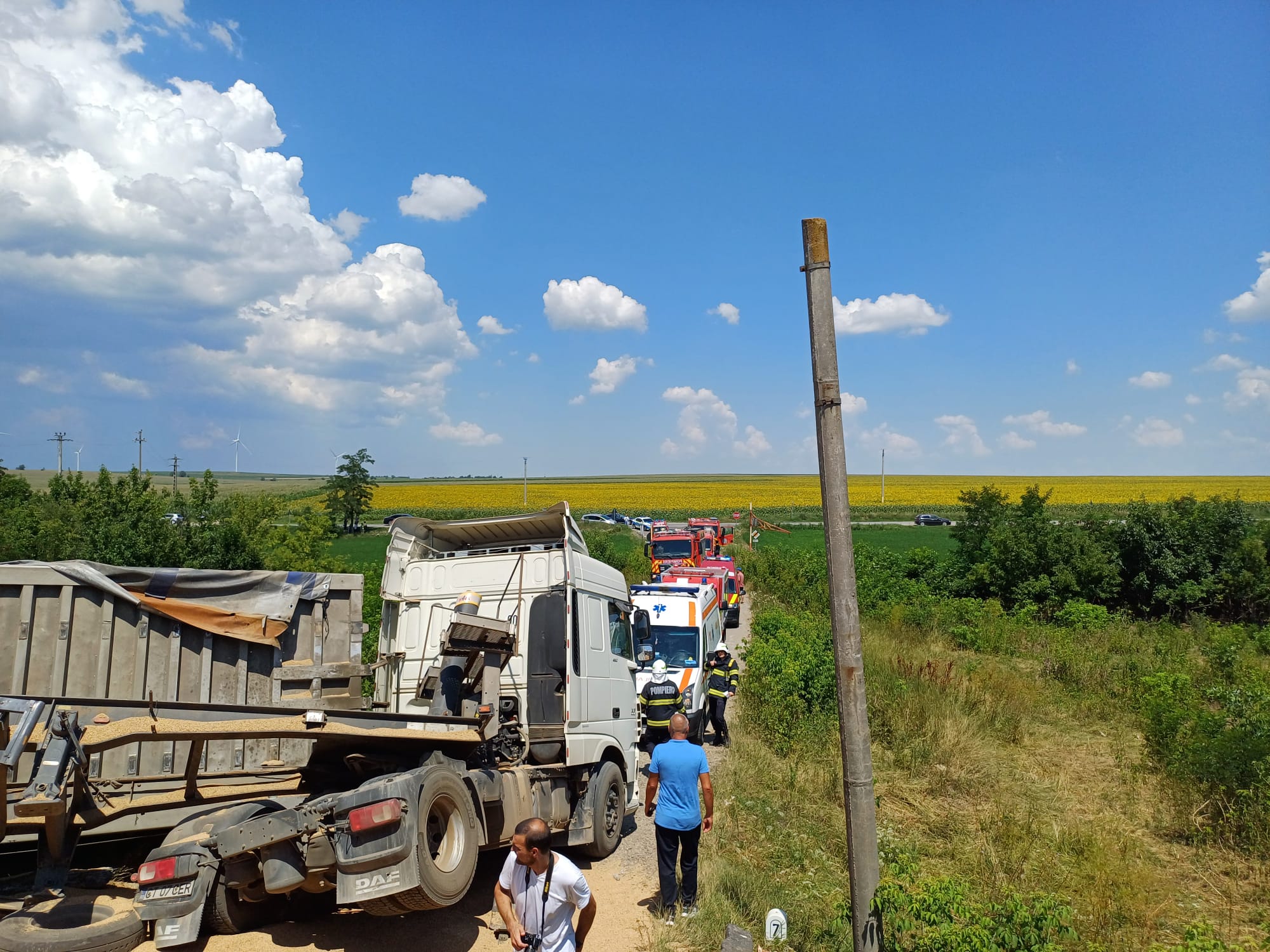 Autocamionul este încărcat cu cereale.