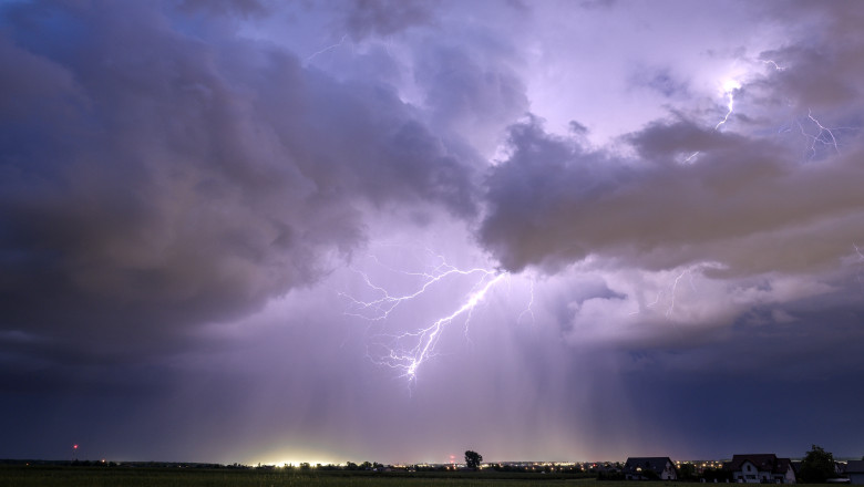 Se vor semnala : Averse torențiale care vor acumula 15…25 l/mp, descărcări electrice, intensificări ale vântului (50…60 km/h), grindină (sub 2 cm).