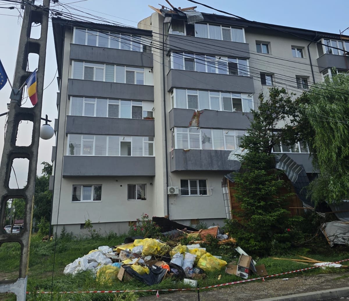 Situație fără precedent în comuna Ciurea din Județului Iași, ca urmare a furtunii care a “măturat” atât județul Iași, cât și județele învecinate, în această după amiază! Blocurile reabilitate din Lunca Cetățuii au suferit distrugeri importante deși abia au fost finalizate lucrările de reabilitare.