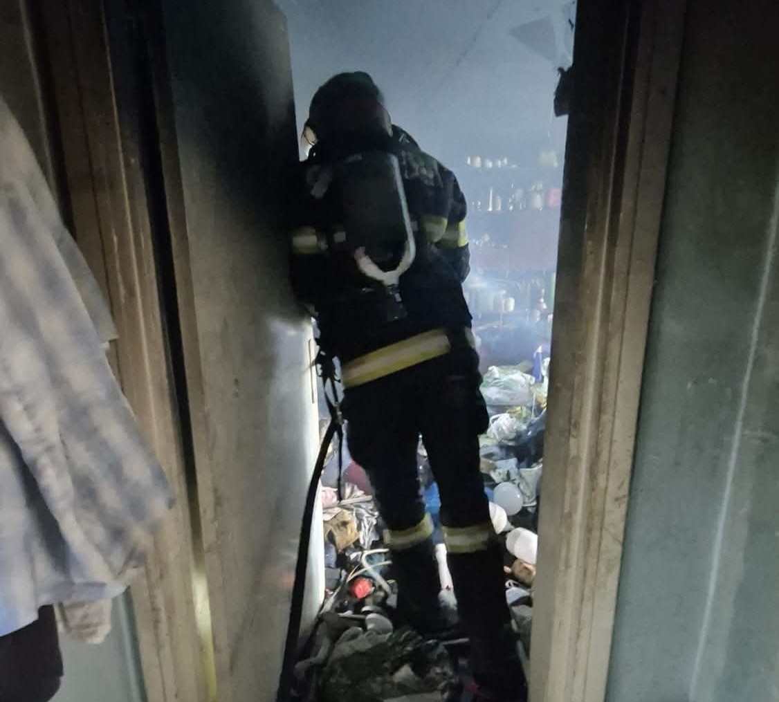 La sosirea forțelor de intervenție, casa scării și apartamentul erau invadate de fum.