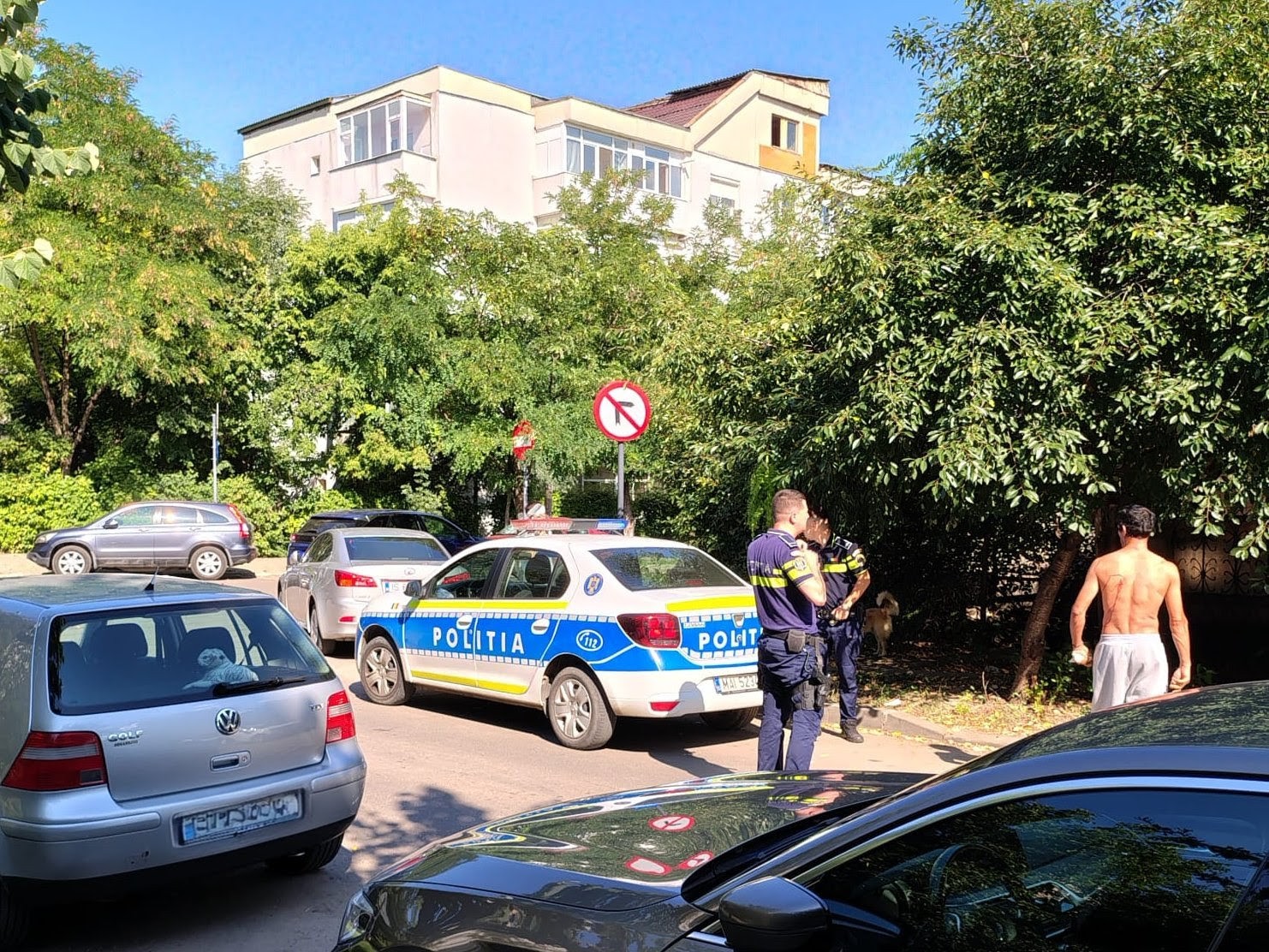 La fața locului a fost solicitat sprijinul unui echipaj de poliție. La sosirea polițiștilor, aceștia au constatat că bărbatul care blocase strada necesită evaluare medicală deoarece prezenta o plagă, posibil de cuțit, pe spate.