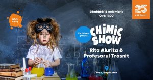 Sâmbătă, de la ora 11:00, la etajul 1, în zona Koton, distracția vine la pachet cu un spectacol exploziv de știință. Rita Aiurita și Profesorul Trăsnit revin la Iulius Mall Iași cu un Chimic Show impresionant, marca BOO Party. Experimente colorate îi așteaptă pe copii să fie mici cercetători pentru o zi.