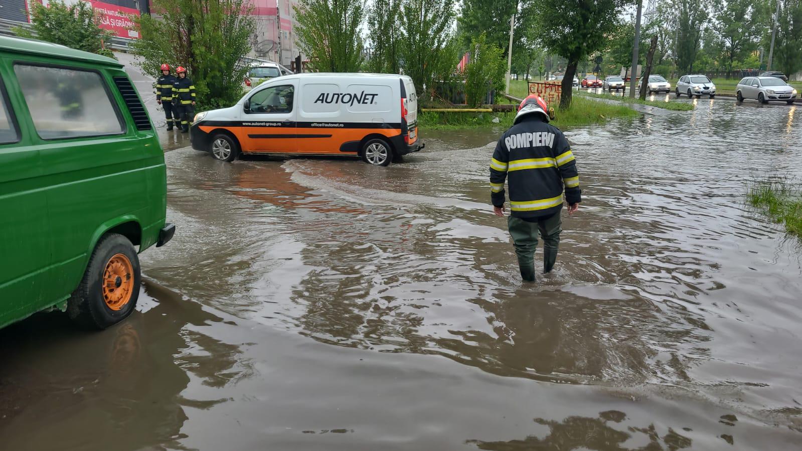 Se acționează pentru evacuarea apei și facilitarea reluării traficului în condiții normale. Situația este monitorizată în dinamică.