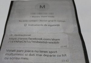 Între timp, primarul nu a stat cu mâinile în sân: ca să închidă gurile părinților, s-a apucat și a lansat o așa zisa dezbatere publică, pentru ca cetățenii să voteze, vor parc sau vor teren de sport? Iar ca să fie sigur că îi iese planul, a trimis mesaje de pe numărul personal prin care îndeamnă oamenii să voteze că nu vor teren de sport ci parc. Mesajul pus la dispoziție de către un cetățean al comunei în redăm mai jos.