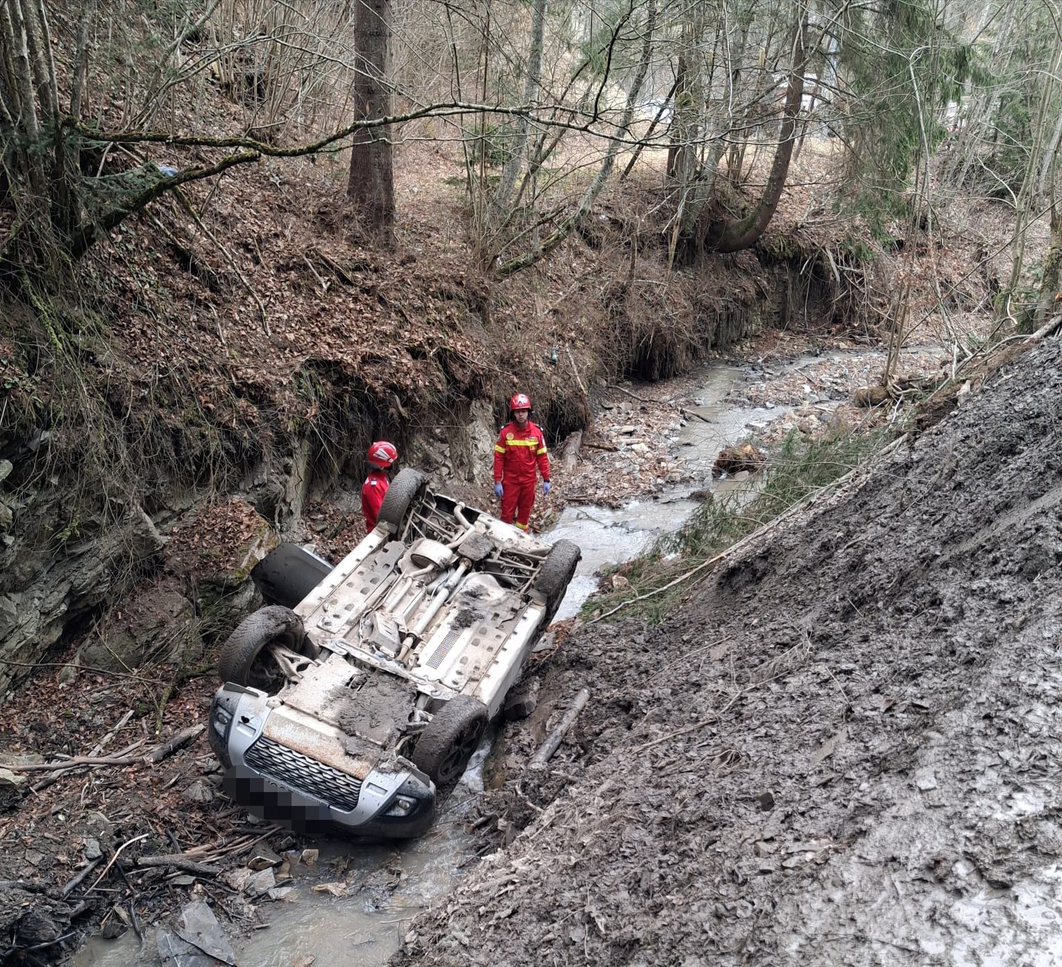 În această dimineață, în jurul orei 09:00, prin apel la 112 a fost sesizat faptul că o mașină este căzută într-un pârâu din comuna Poiana Teiului (într-o râpă de cu o adâncime de aproximativ 7 m din satul Petru Vodă).