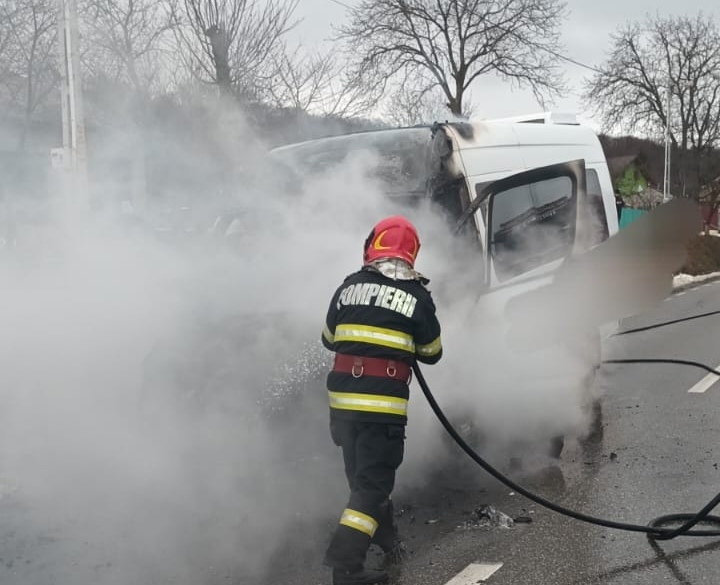 La ora 11:47 pompierii au fost solicitați să intervină pentru stingerea unui incendiu produs la un microbuz ce se afla în mers în comuna Poienari. Apelul a fost făcut de conducătorul auto care a sesizat prezența fumului în interiorul microbuzului. Imediat a oprit autovehiculul pentru ca cei 18 pasageri să se autoevacueze.
